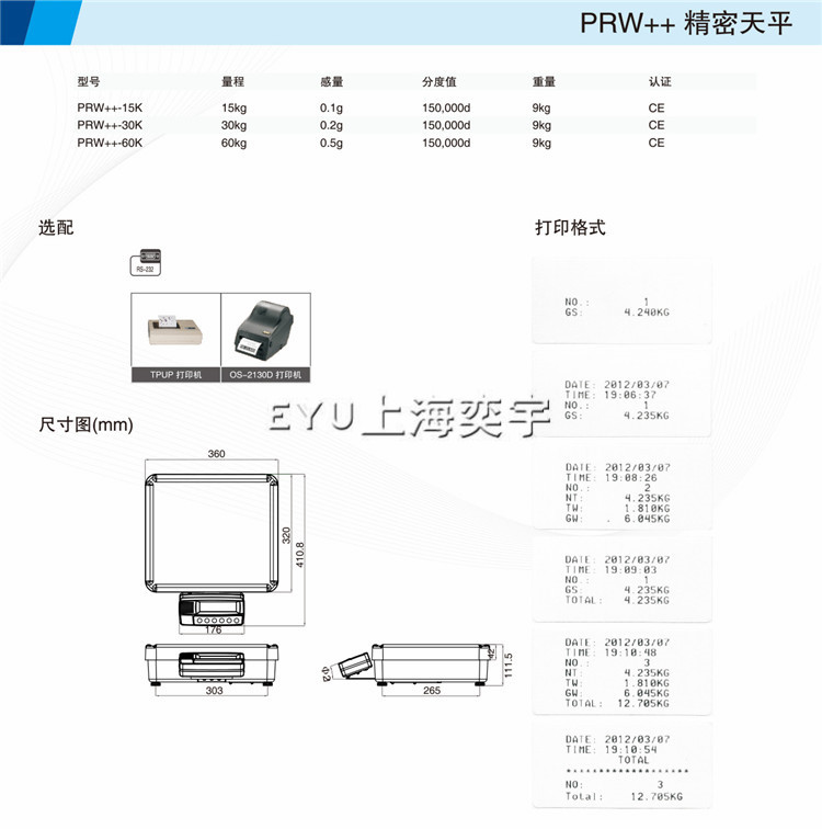 EYU-PRW PLUS2-60K 計(jì)重桌秤