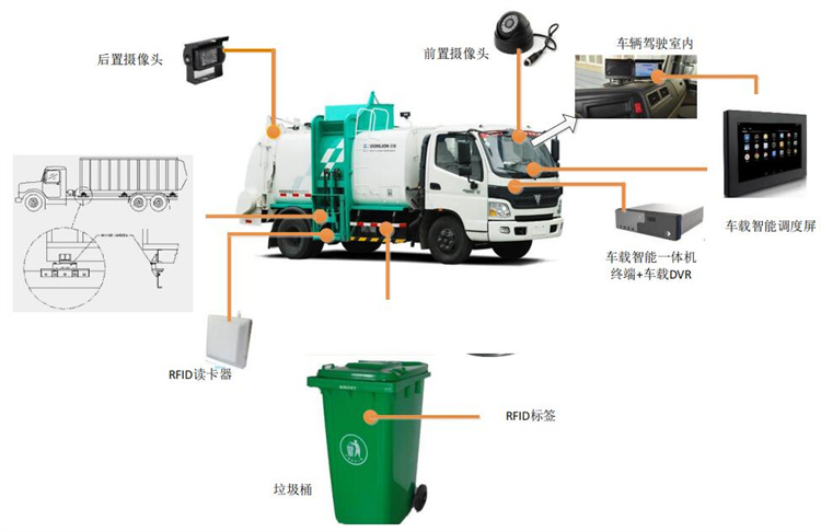 車載 RFID 設(shè)備:車載端能夠讀取每個垃圾桶的身份電子標(biāo)簽的信息;
