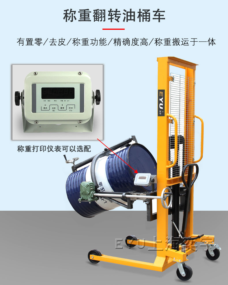 帶電子秤稱重油桶翻轉(zhuǎn)倒料車功能: